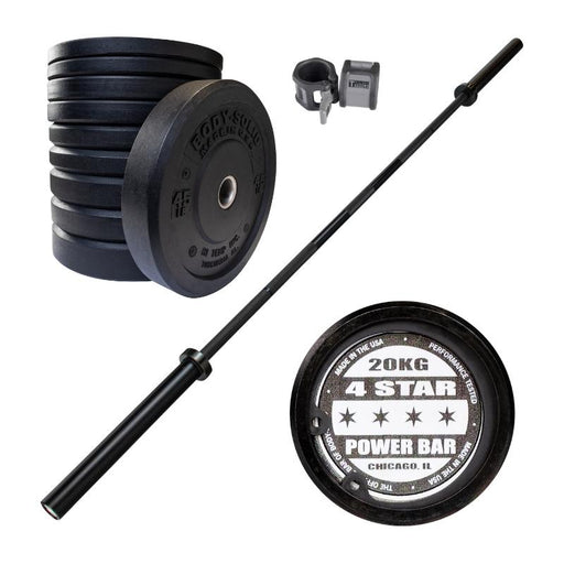 The Body-Solid Premium USA Bumper Plate and Barbell Set This package is simple. One barbell, one set of bumper plates. The perfect place to start....