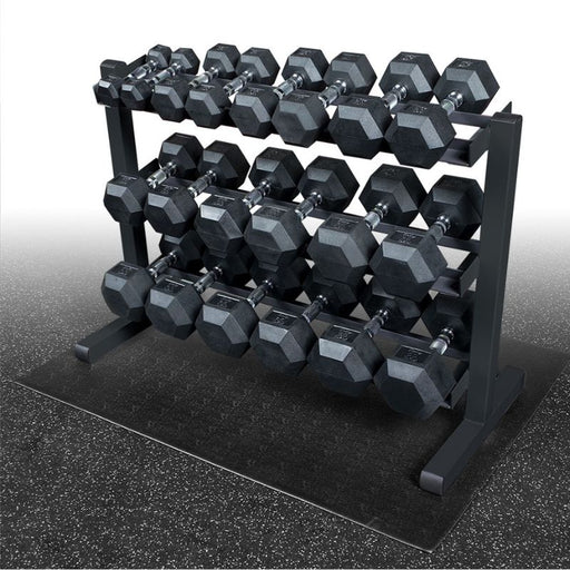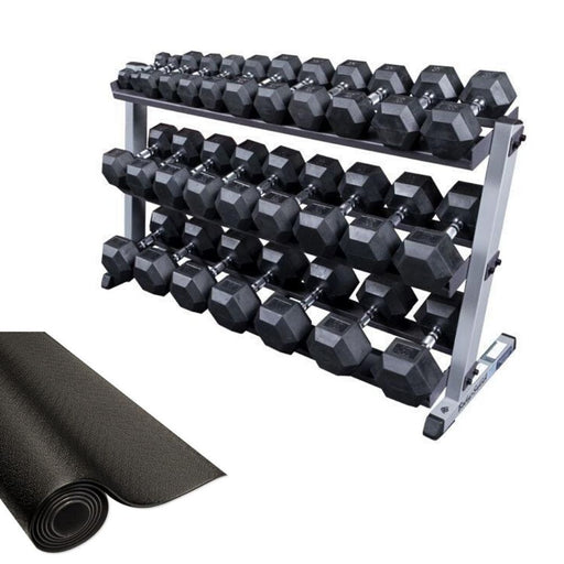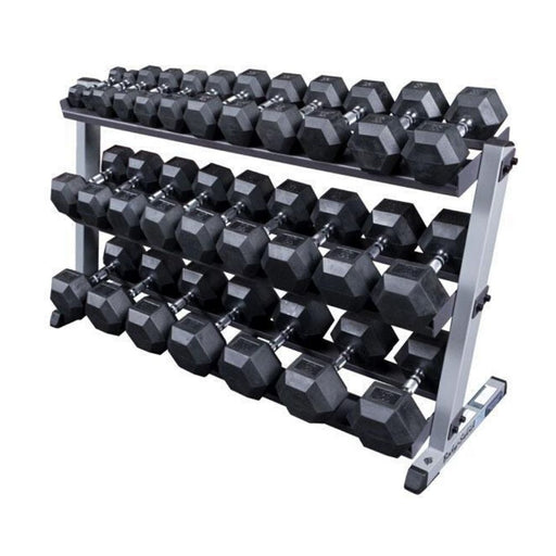 Body-Solid Rubber Hex Dumbbell 5-50lb Package This packages boasts our best selling Body-Solid rubber hex dumbbells, complete with a 3-tier rack a...